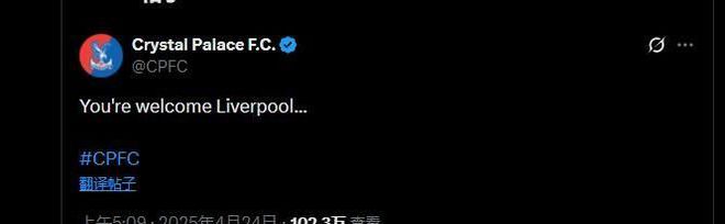 逼平阿森纳影响争冠格局,水晶宫官推赛后发文:利物浦,不用谢